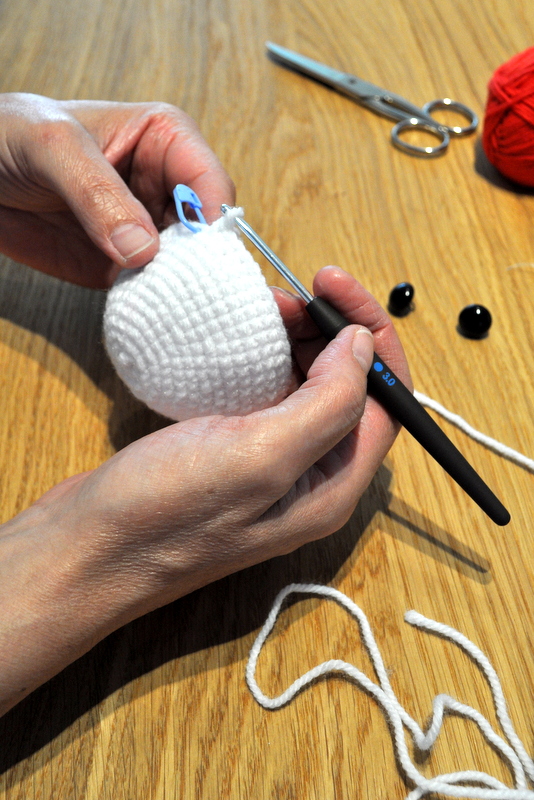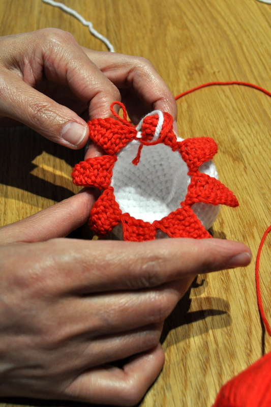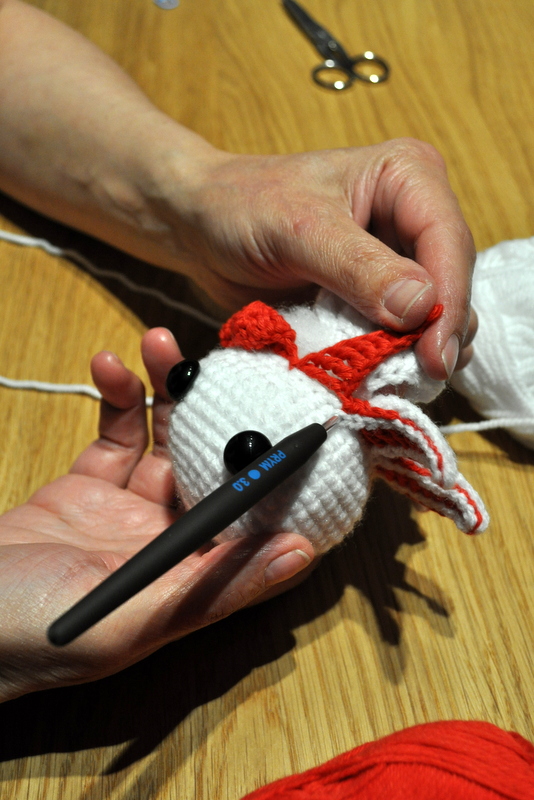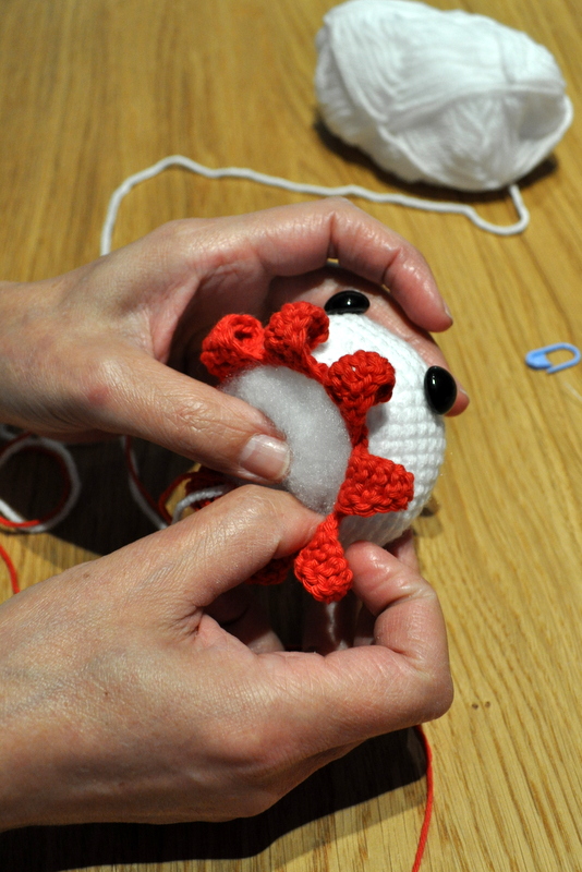 Création de Cathy, petite pieuvre blanche et rouge