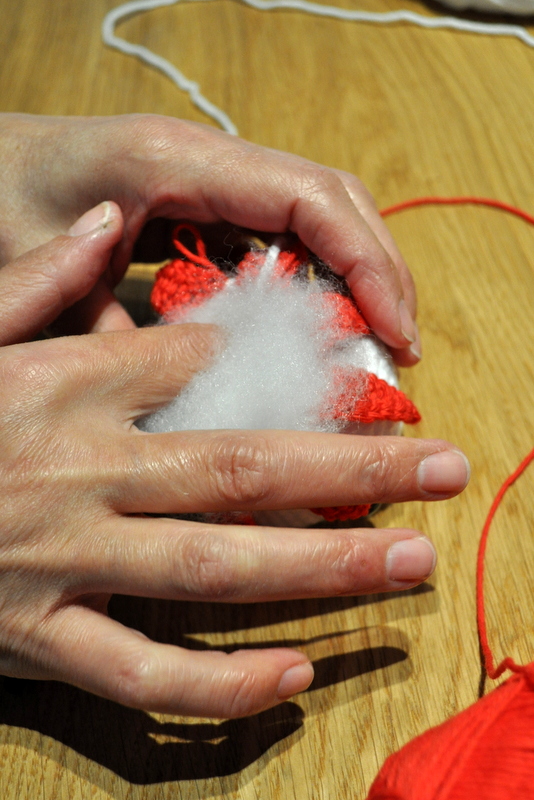 Remplissage du corps de la pieuvre avec de la ouate