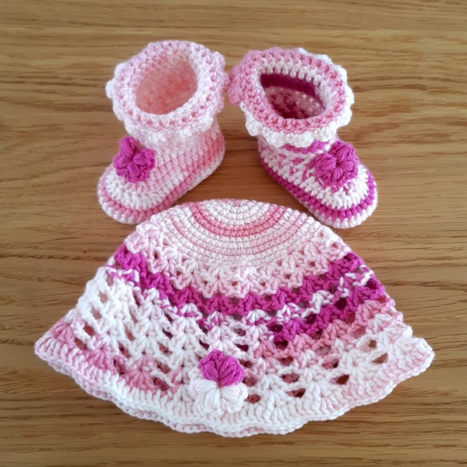 Set chaussons et bonnet pour bébé fleurs framboise